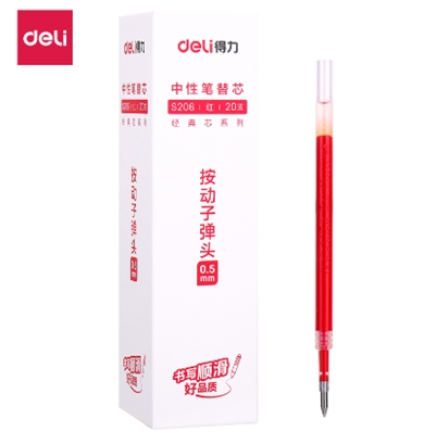 得力 S206中性笔替芯0.5mm按动子弹头(红) 20支/盒 |