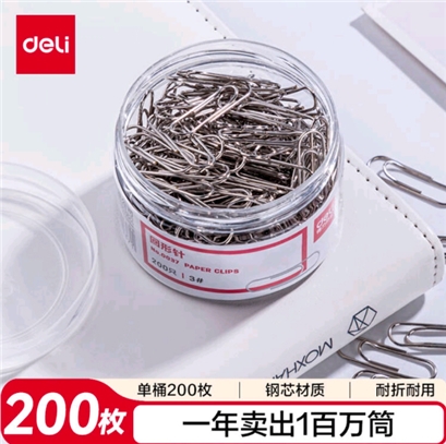得力0037 回形针 200个/盒 |